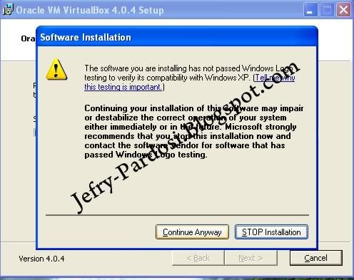 Jika ada pesan seperti gambar di atas Klik Continue Anyway..