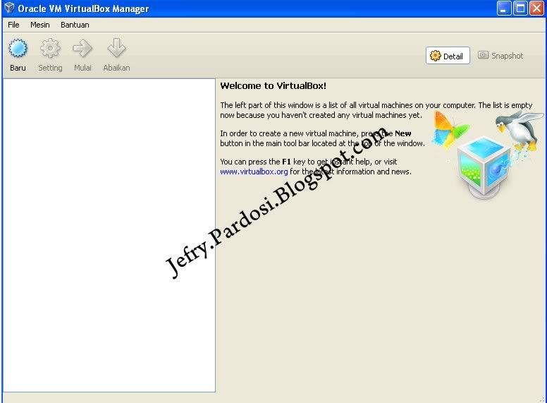 Pertama Anda harus memiliki VirtualBox. Anda Dapat Men-Downloadnya disini ( 76 MB )