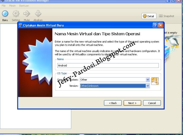 Anda dapat mendownloadnya di situs resmi VirtualBox, atau Anda dapat Download File Android.vdi nya Disini..(57MB)